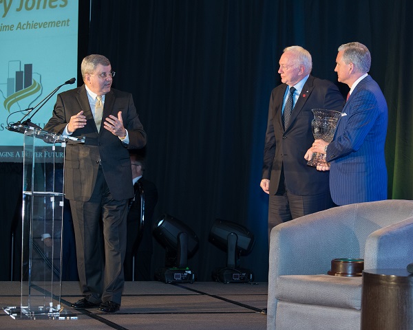 Throughout the evening we had a welcoming reception, sang the National Anthem, extended our networking with LinkedIn, recognized our very important sponsors, were welcomed by top dignitaries, learned from our CEO panelists, were enlightened and entertained by the fascinating entrepreneurial journey of Jerry Jones, and we presented Jerry Jones with Texas Consilium’s inaugural Business Excellence Award for Lifetime Achievement. It was a full and memorable evening!